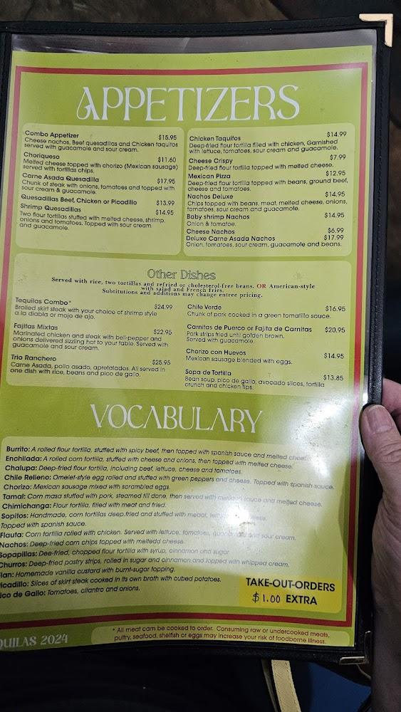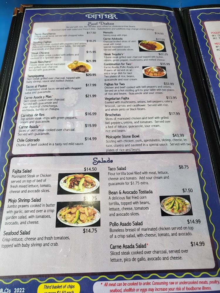 Tequilas features a rich menu with over 99 dishes. Highlights include flavorful enchiladas, sizzling fajitas, and fresh seafood options like Campechana and Arroz Con Camarones. Prices range from $10 to $20, accommodating various budgets.